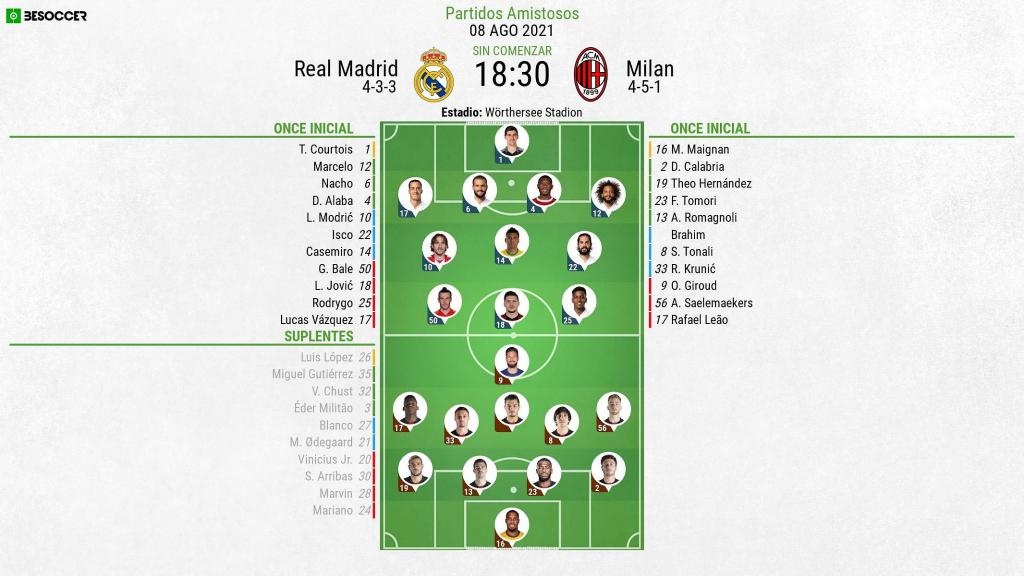 Real Madrid vs. Milan EN VIVO ONLINE por un amistoso de ... from iframe.bolavip.com Real madrid are coached by carlo ancelotti, the former milan player and manager, so it could be an interesting clash. Jun 08, 2021 · goal can confirm that milan are in talks to sign brahim diaz on a permanent deal, with real madrid setting a €30 million (£26m/$37m) asking price for the midfielder. Jul 01, 2021 · the relations between the two clubs are excellent and there is thus optimism that the friendly will materialise. Jun 25, 2021 · ac milan, juventus and real madrid are all interested in signing lazio star luis alberto, who is considered unsellable by new coach maurizio sarri.